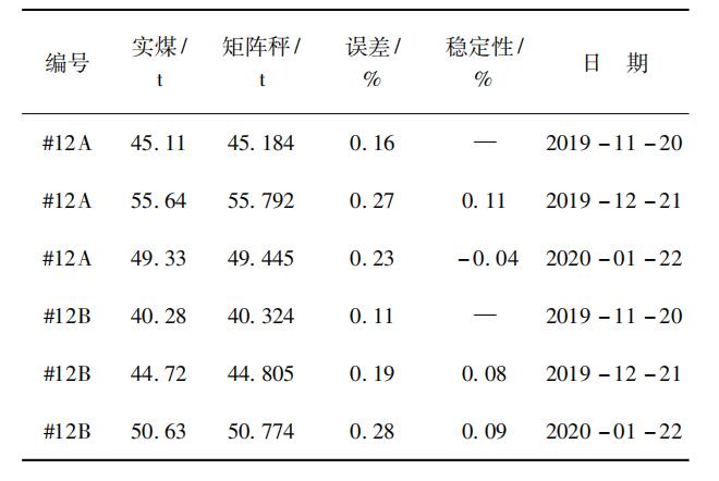 改造前,#12A/B 兩臺皮帶秤實物檢定結果如 表 2 所示,實煤的稱量采用汽車衡。
