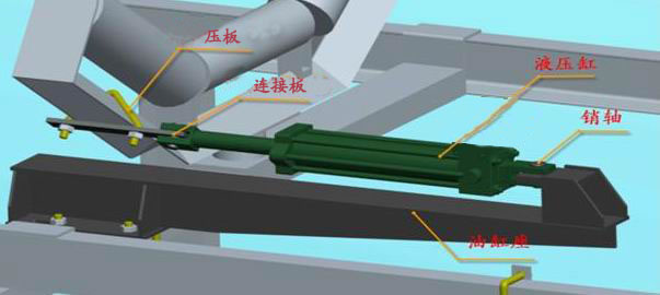 油缸通過油缸座固定在上調心托輥的下橫梁上,下橫梁一般都是槽鋼。安裝過程可分為如下步驟: