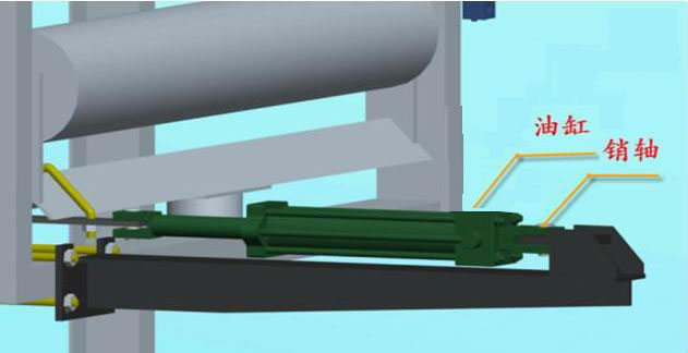 ?、?把液壓缸的兩個耳環孔分別按照如圖所示的位置用銷軸裝在活塞桿卡子和油缸座上。
